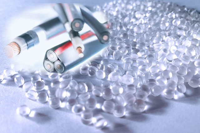 過氧化物交聯(lián)PE電纜料 1. PE顆粒 2. 助劑 3. 失重式喂料機(jī) 4. 液體喂料機(jī)(DCP) 5. 雙螺桿擠出機(jī) 6. 單螺桿擠出機(jī) 7. 偏心水霧模面熱切 |